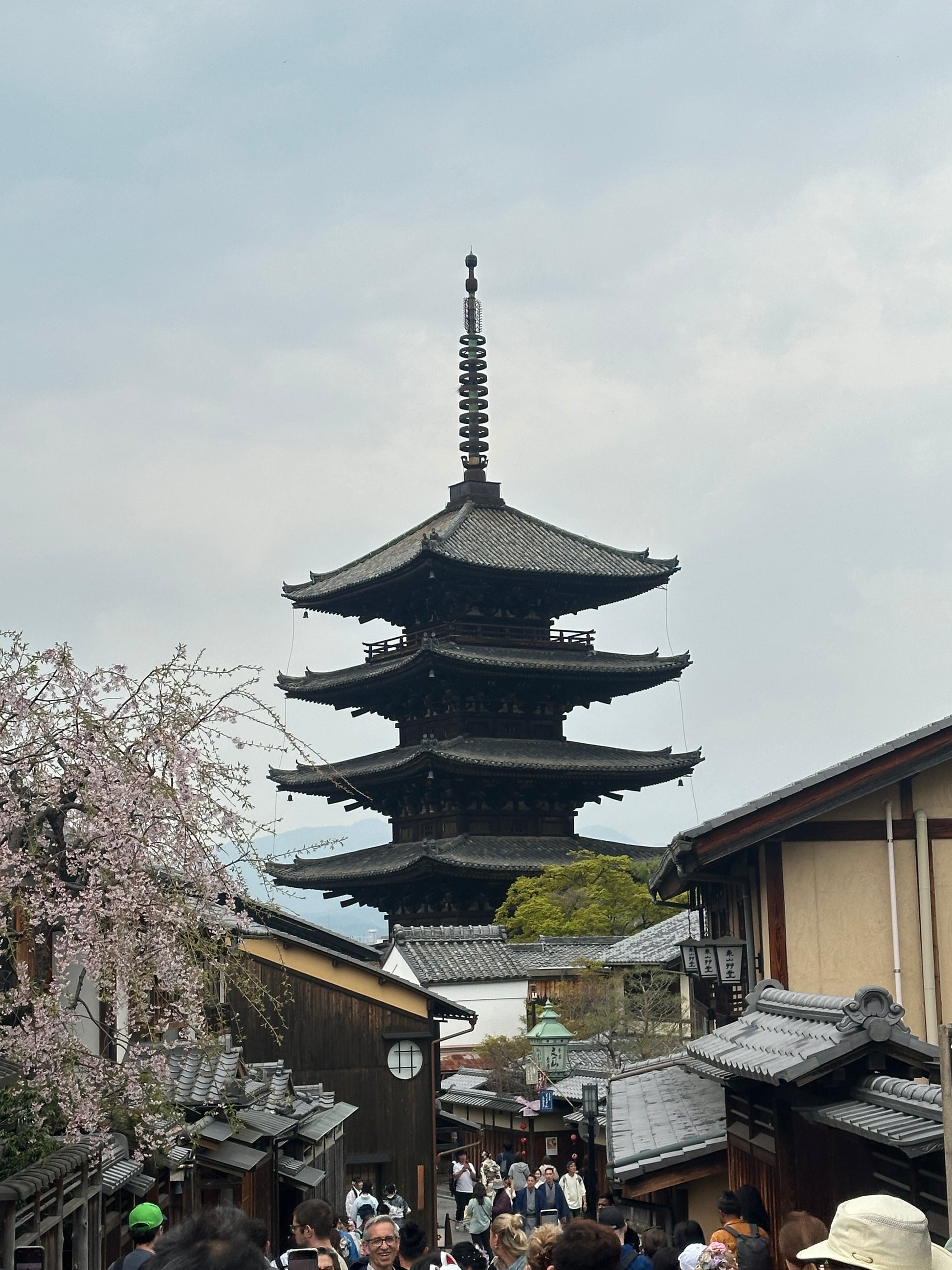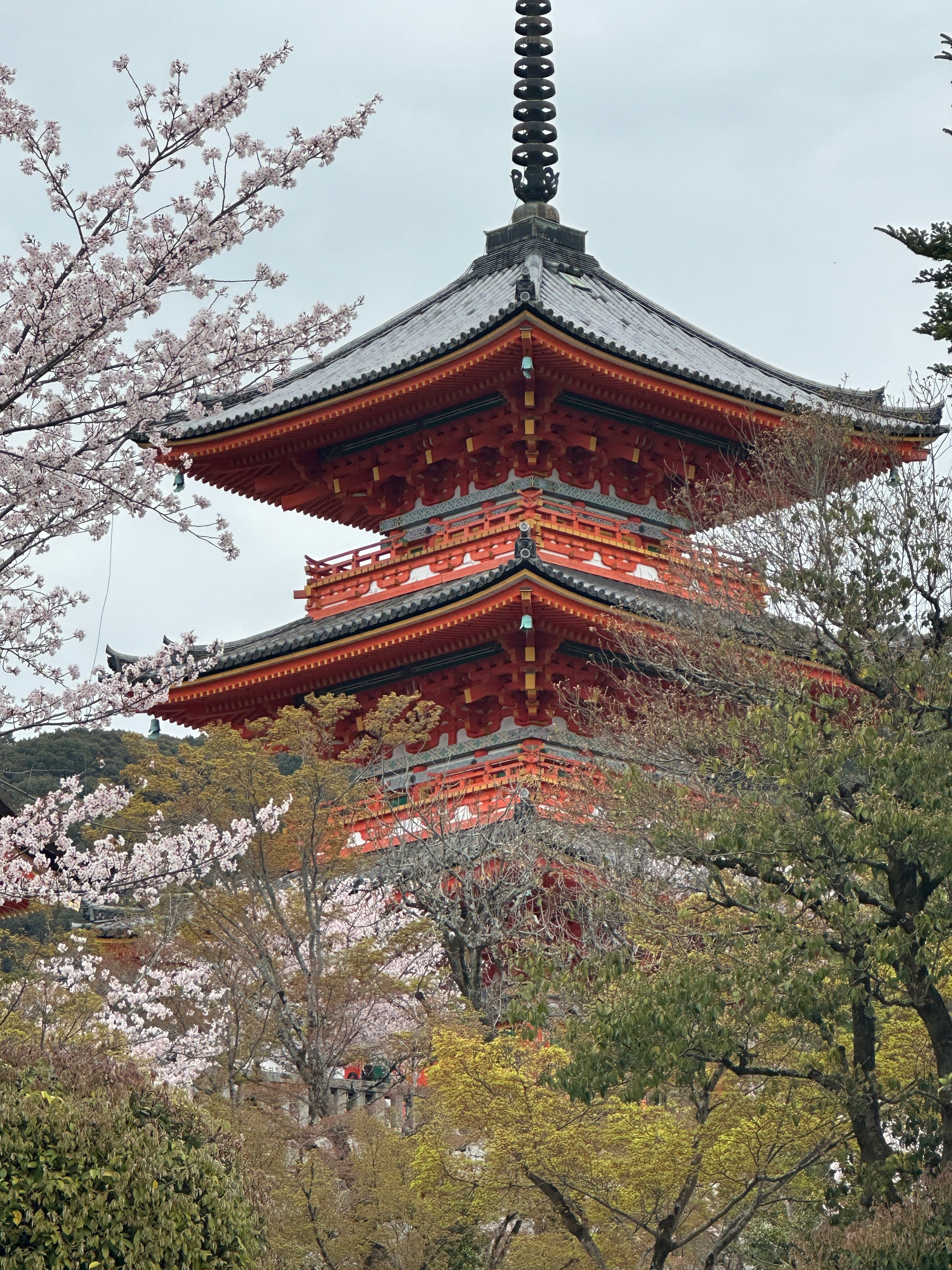 Nuestra siguiente parada es el famoso Templo Kiyomizudera, declarado Patrimonio de la Humanidad. Con su gran terraza que se extiende sobre un acantilado, ofrece vistas panorámicas impresionantes de Kioto, especialmente en la temporada de los cerezos en flor.